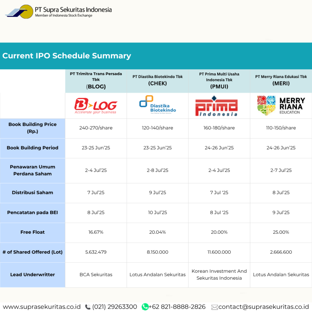 Jadwal Penawaran Umum Perdana (Initial Public Offering/IPO).